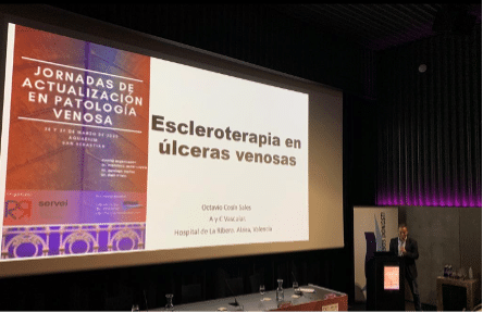 Dr Cosín was invited again by the organizing committee to moderate a round table discussion and to give a lecture on the treatment of venous ulcers. He stressed the importance of addressing all aspects of the care of a venous ulcer, but especially its minimally invasive treatment, in order to heal it and prevent recurrences.